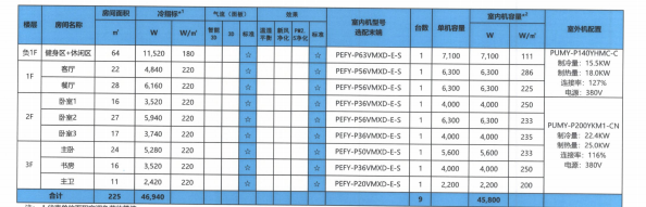 三菱機電中央空調(diào)系統(tǒng)技術(shù)配置表