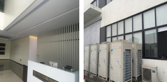 本項目辦公樓空調選用大金VRV D系列中央空調室外機和中靜壓風管機及大金分體FQ系列風管機;本項目廠房空調選用大金設備用空調高靜壓變頻系列高靜壓柜機。