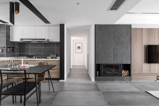 雖然沒有直接光源,卻通過不同形式的光效渲染,生成一種“無影照明”。在墻壁埋藏?zé)魩В専艄庀袼粯酉催^墻面,為空間增添現(xiàn)代感。