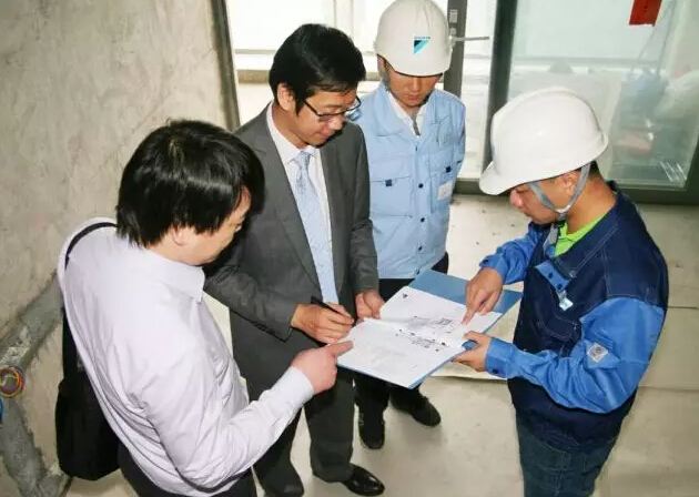 工事溝通現(xiàn)場(chǎng):家用中央空調(diào)的安裝事先需要用戶、內(nèi)裝公司及PROSHOP安裝團(tuán)隊(duì)充分溝通。