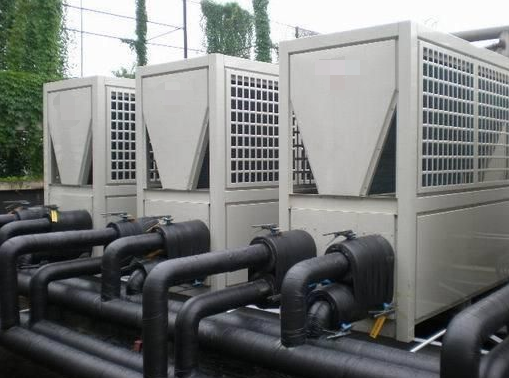 將傳統(tǒng)的氟利昂管路改變?yōu)樗苈罚瑢⑹覂?nèi)外機合并為制冷機組,室內(nèi)機改為風(fēng)機盤管。利用載冷劑水的換熱來實現(xiàn)制冷過程,模塊機由于能夠根據(jù)冷負荷要求自動調(diào)節(jié)啟動機組數(shù)量。